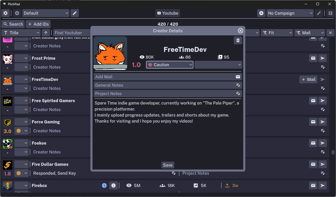 Whether you are promoting a game, an app, or a creative project, PitchPad helps you find, organize, and contact creators without the chaos.